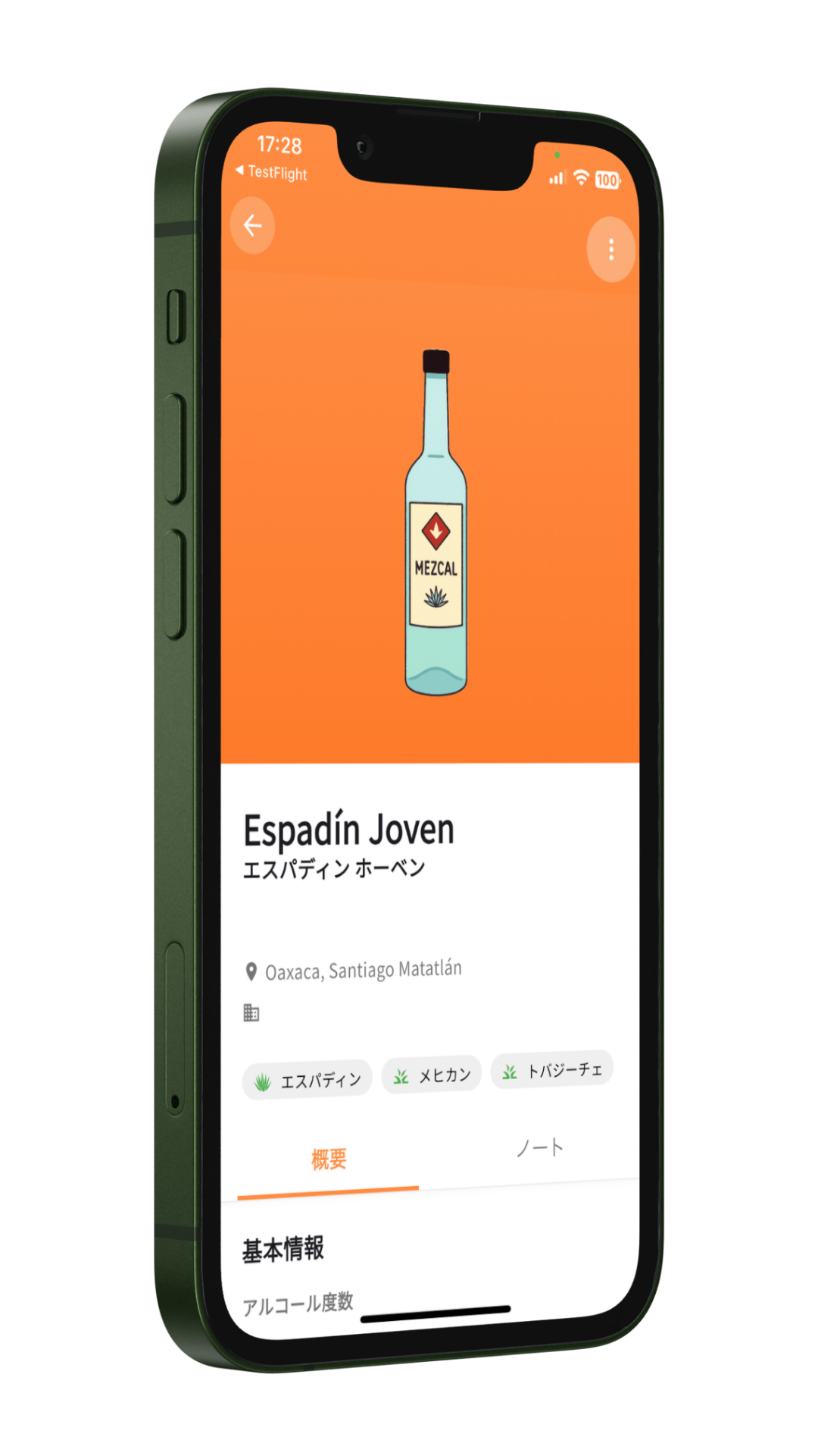 カメラでボトルを撮影するだけで、メスカルの詳細情報を自動取得。銘柄、産地、製造方法まで瞬時に分かります。